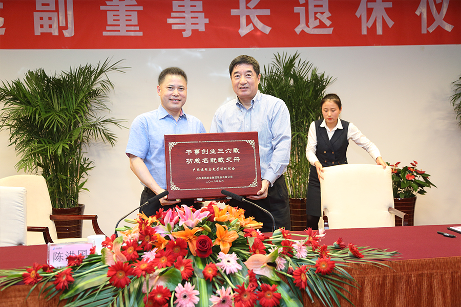 陳洪國董事長代表公司向尹同遠贈送了一份精心制作的紀念品,在紀念品的上面赫然寫著“干事創(chuàng)業(yè)卅六載,功成名就載史冊”,這體現(xiàn)了公司對他多年來工作成績的充分肯定。