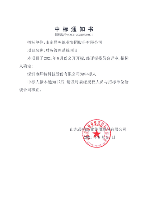 財務(wù)管理系統(tǒng)項目中標(biāo)通知書