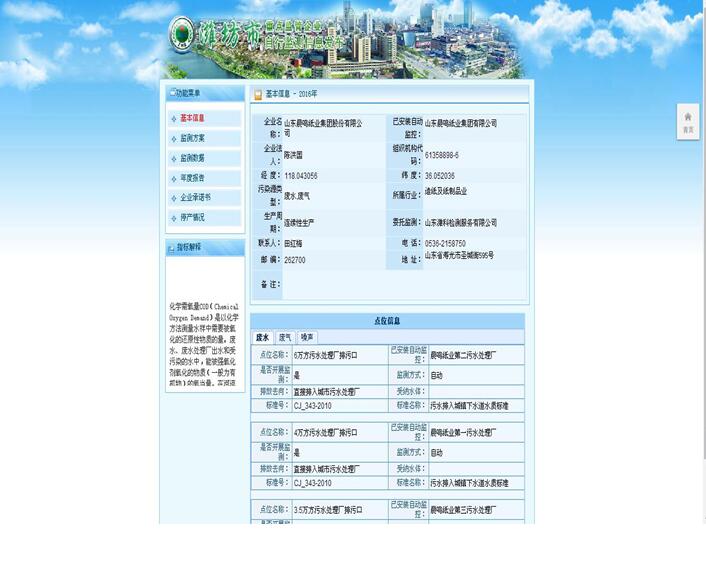 山東晨鳴紙業(yè)集團廢水、廢氣自測公示161019
