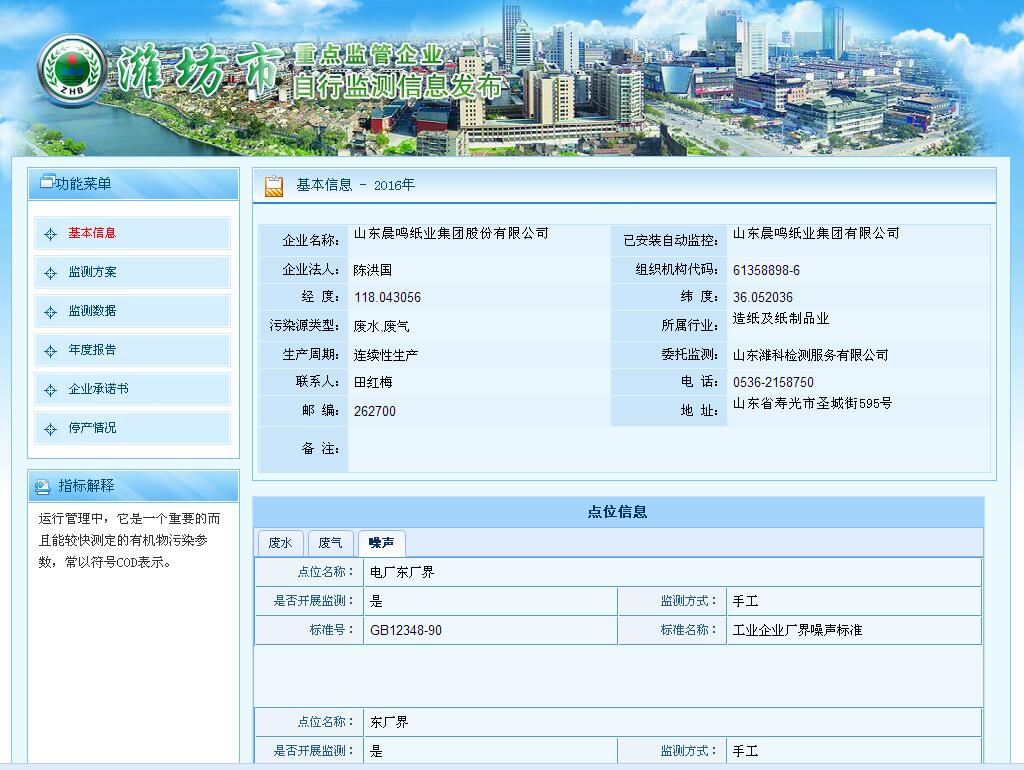 山東晨鳴紙業(yè)集團(tuán)廢水、廢氣自測(cè)公示161019